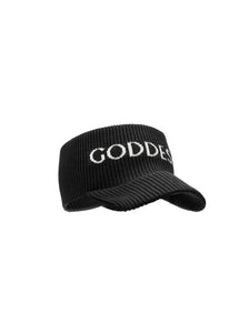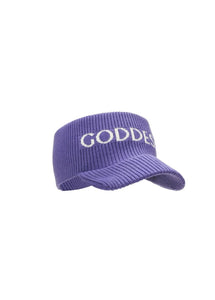 Tangüis cotton and Baby Alpaca knitted visor with inlaid lettering reproducing the word GODDESS on front.