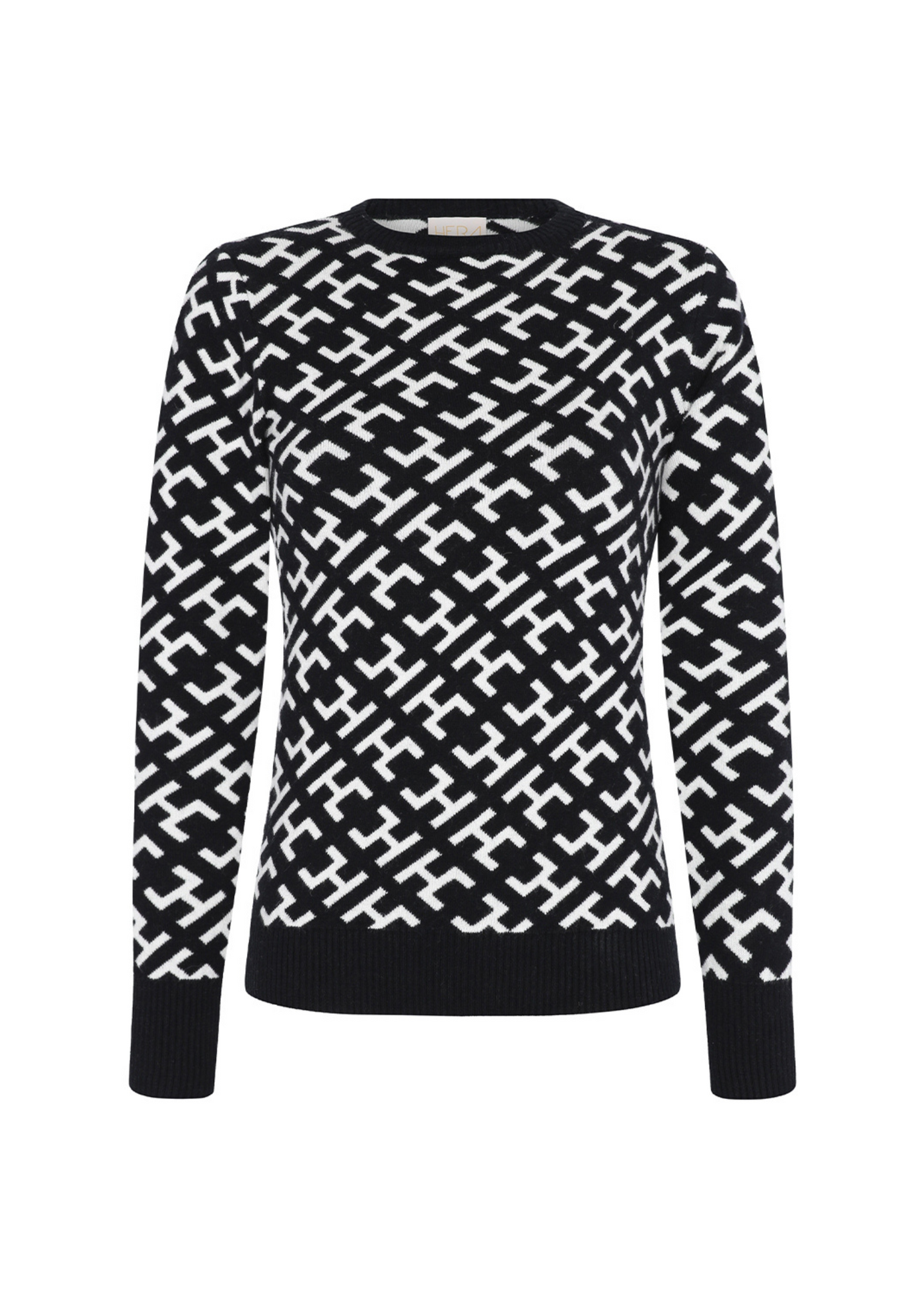HC FULL MONOGRAM CREW NECK SWEATER - BLACK